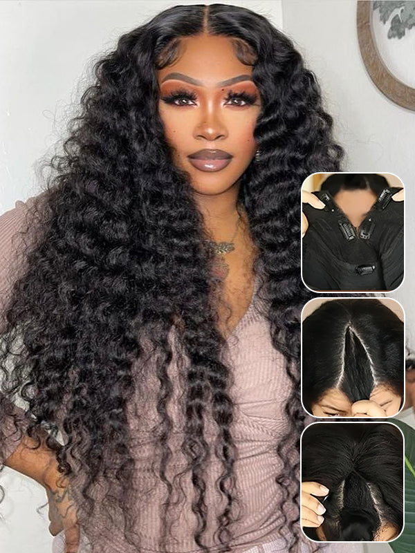 The v part wigs human hair have a v-shaped opening in the middle of the wig cap, letting your natural hair be pulled out to blend with the wig hair, which can show off part of your own hairline. In this way, human hair v part wigs can create a more natural and realistic appearance than other types of wigs. Compared with other hand-tied human hair lace wigs, v part wigs are more affordable.
